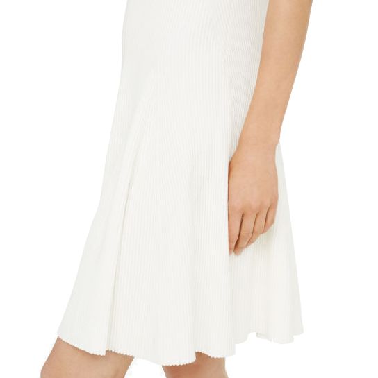 Fitted through the bodice and softly flaring at the waist, our Melanyie dress reimagines this timeless silhouette in a richly textured, mixed rib knit.