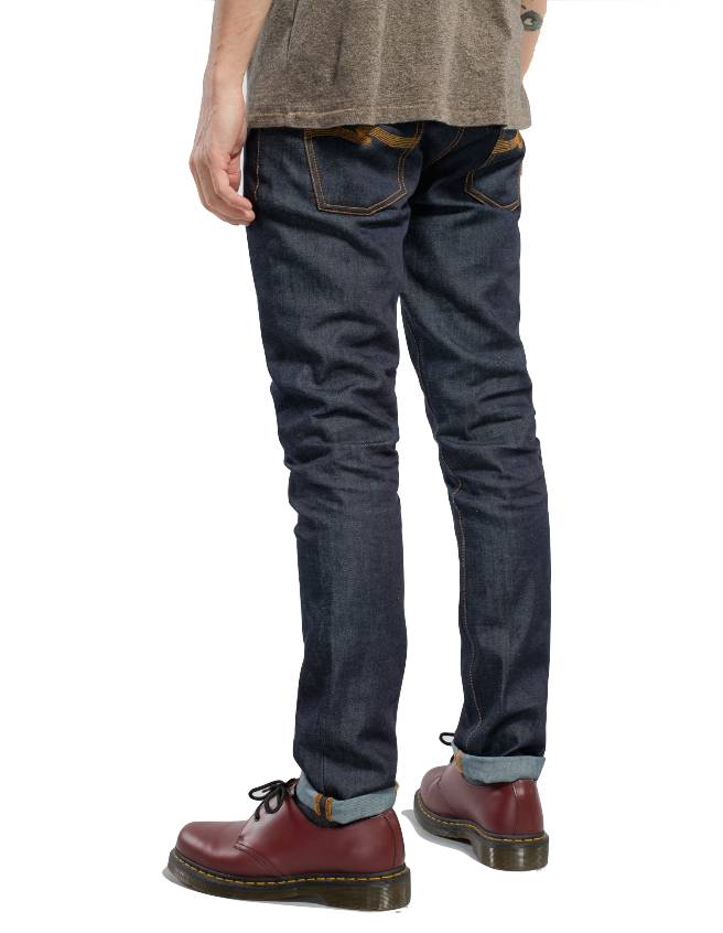 Like the name implies, this dry, deep blue, comfort stretch option has been through 16 indigo dips. Unlike other stretch denim, these are not rinsed, so they are stiffer, and will shrink a bit more. Account for inseam shrinkage of 2% and 4.5-6% in width. Thus, sizing down is not recommended.
